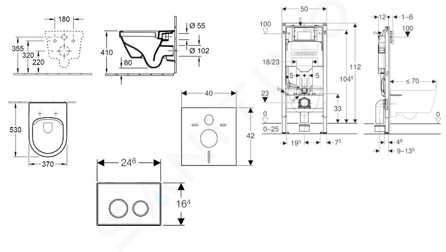 Monteringselement Duofix til indbygningscisterne WC Sigma 12 cm