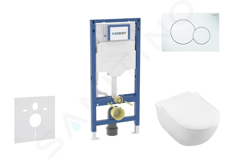 Sæt med skillevægsinstallation, toilet, toiletsæde og kontrolknap