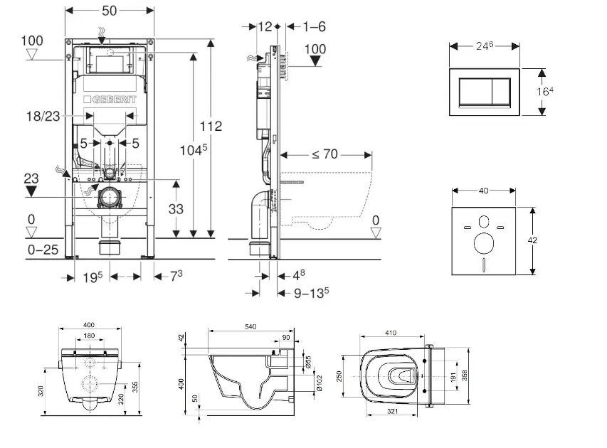 Komplet installationssæt til væghængt toilet