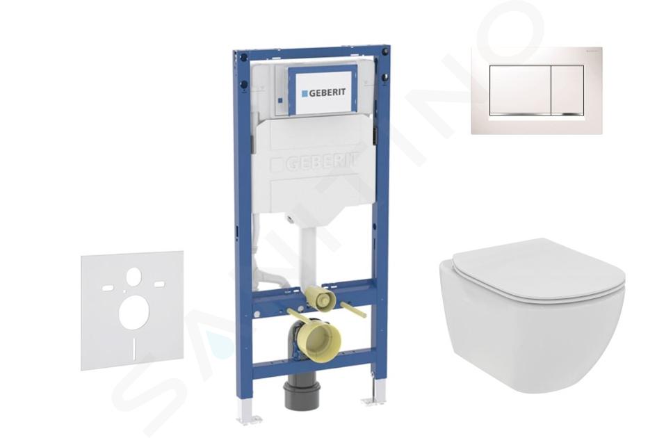 Sæt med Ideal Standard Tesi væghængt toilet og sæde, Sigma30-knapper, hvid/krom
