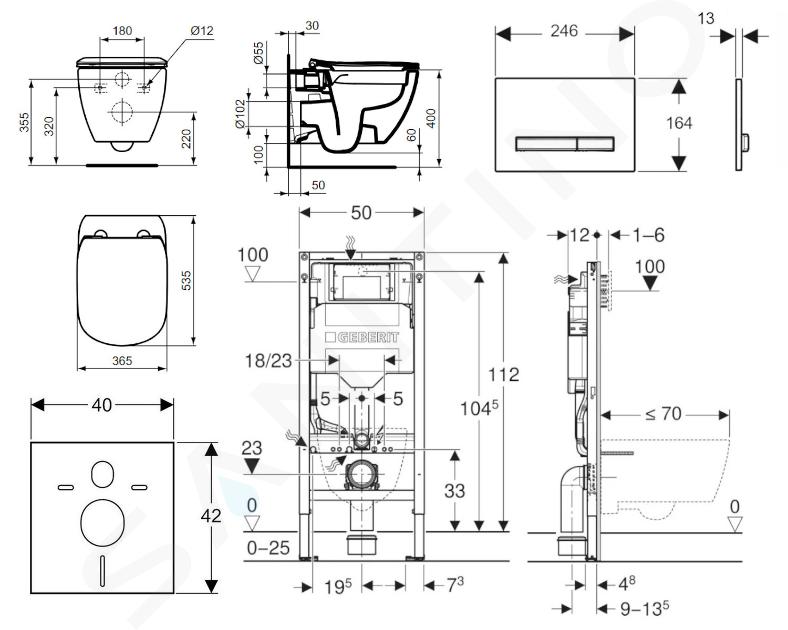 Monteringselement Duofix til indbygningscisterne WC Sigma 12 cm