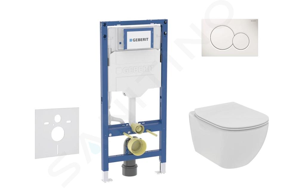 Sæt med væghængt installation, toilet og sæde Ideal Standard Tesi, knapper Sigma01, alpinhvid