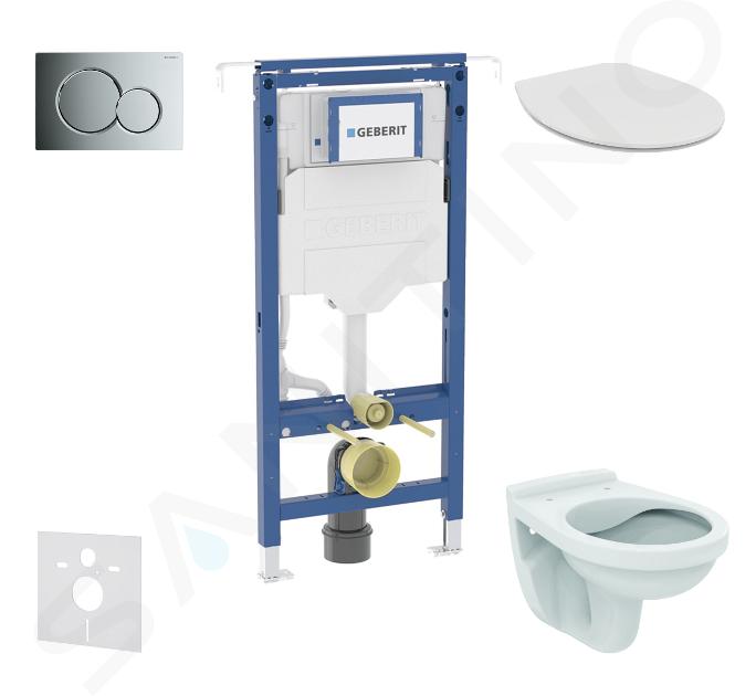 Sæt med vægmonteret installation, toilet og sæde Ideal Standard, knapper Sigma01, blank krom
