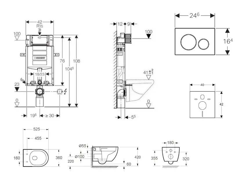Forvægsinstallation Kombifix-modul til væghængt toilet med Sigma 12 cm skyllecisterne