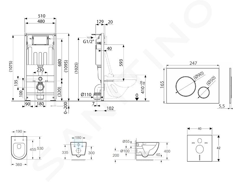 Monteringssystem til væg, toilet med SoftClose sæde og Gemini IV Skylleplade set