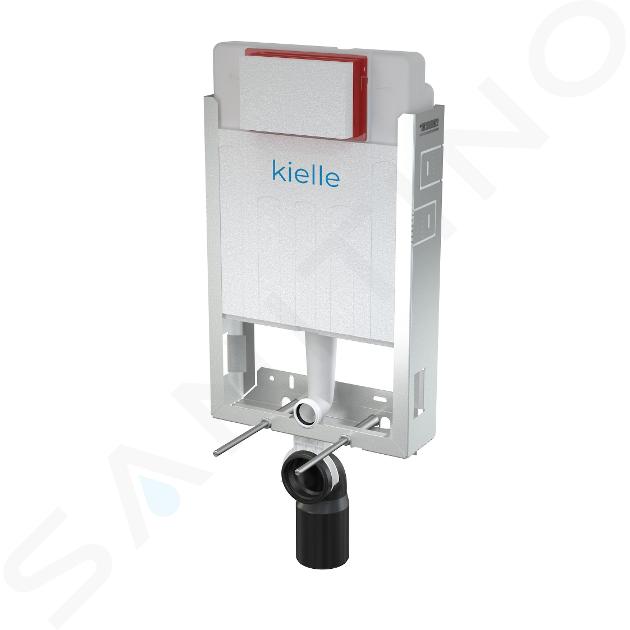 Den korrekte, sikre fastgørelse af forankringskomponenterne til et væghængt toilet sikres af installationsmodulet kielle Genesis. En del af dette system er også tilslutning af vand- og afløbsrør. Fra fabrikken er skyllevolumenet indstillet til 3 liter (lille skyl) og 6 liter (stor skyl).